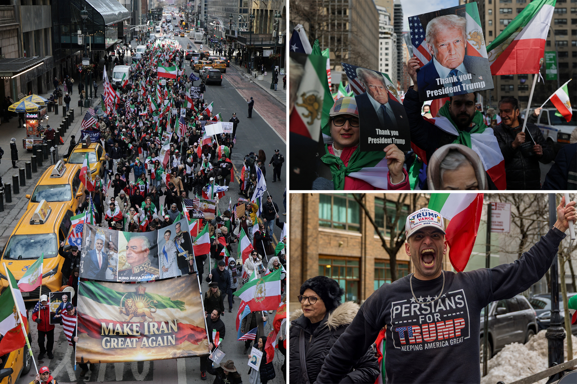 Approximately 500 demonstrators gathered in Midtown Manhattan, chanting support for America and President Trump while carrying banners reading ‘Make Iran Great Again.’ The crowd marched toward Times Square waving the Iranian Lion and Sun flag, which has been banned since the 1979 Islamic Revolution. Participants sang Iran’s pre-revolutionary national anthem, celebrating what many view as liberation from decades of oppression. Similar celebrations erupted across Los Angeles, and internationally in London, Paris, and Canada, where demonstrators expressed gratitude for the military action.